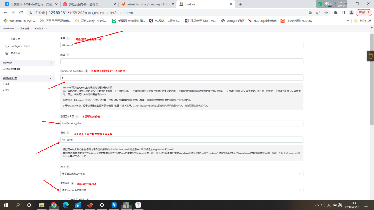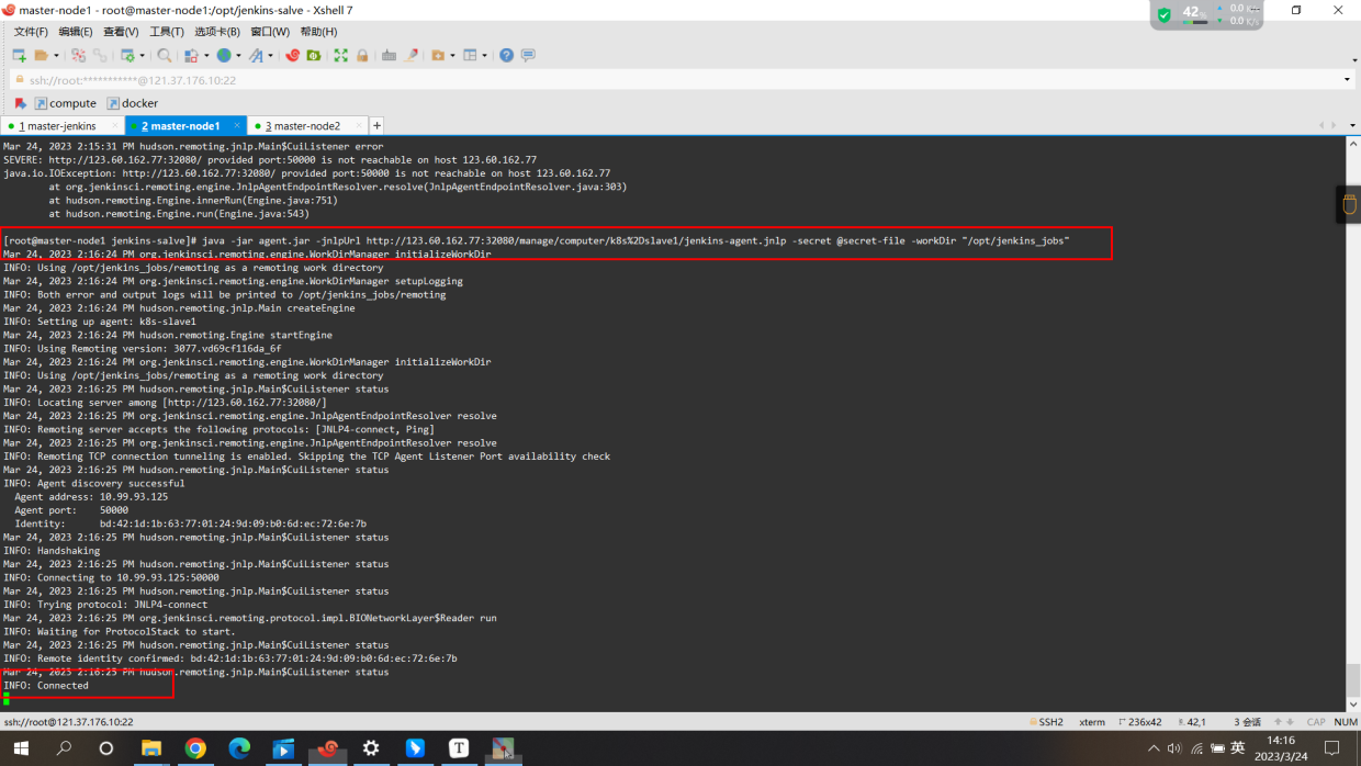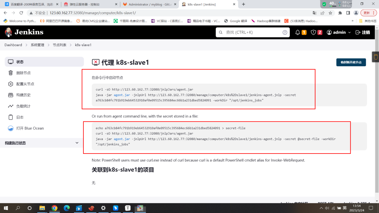 但是因为java -jar agent.jar -jnlpUrl http://123.60.162.77:32080/manage/computer/k8s%2Dslave1/jenkins-agent.jnlp -secret @secret-file -workDir "/opt/jenkins_jobs"