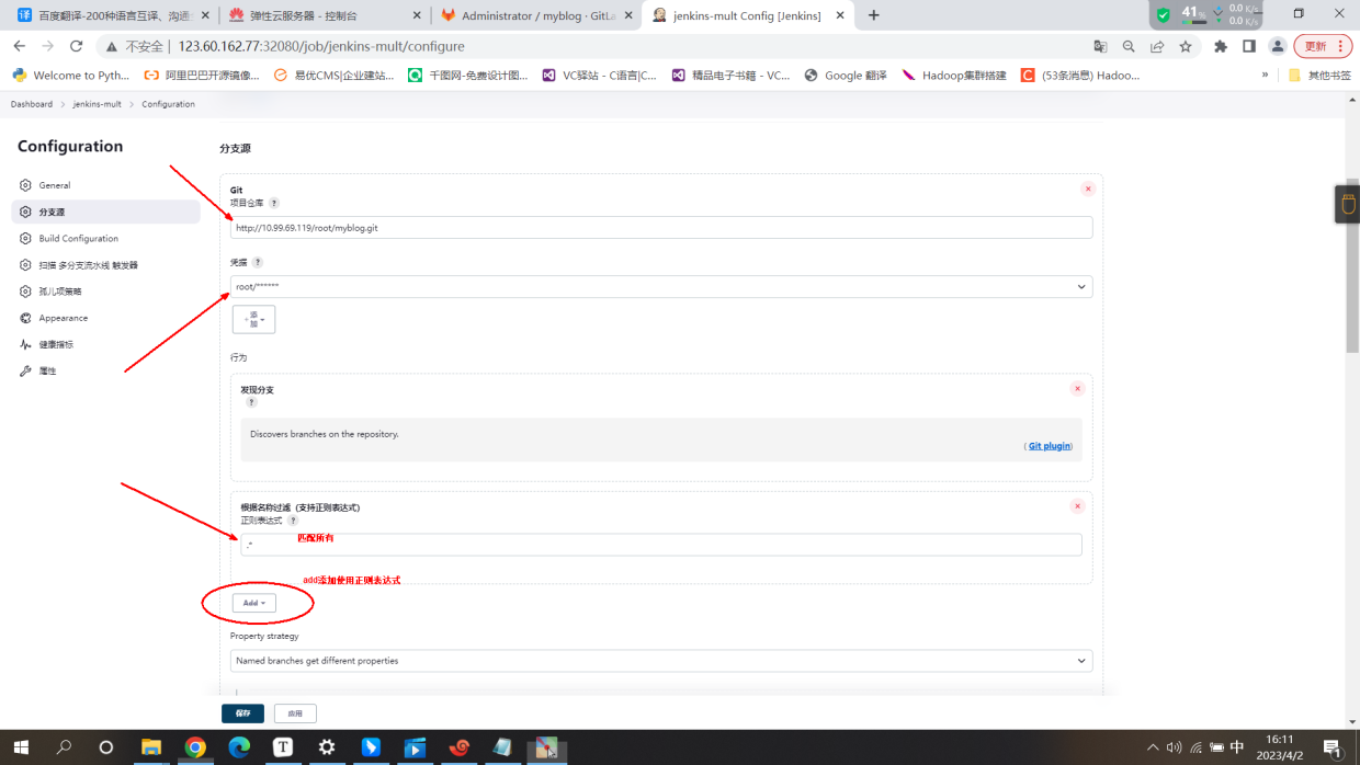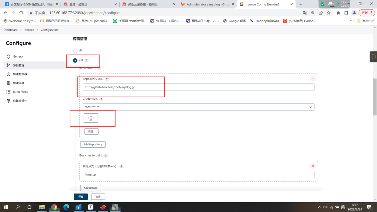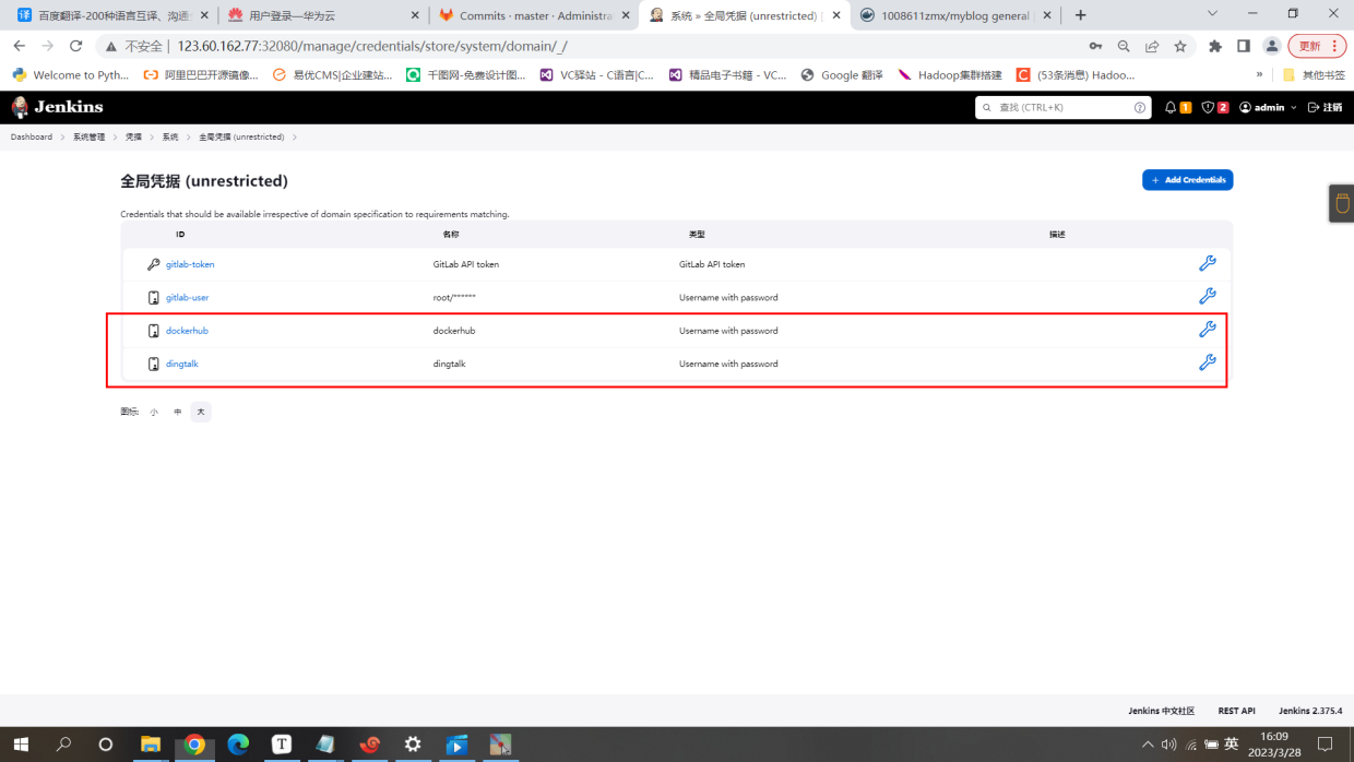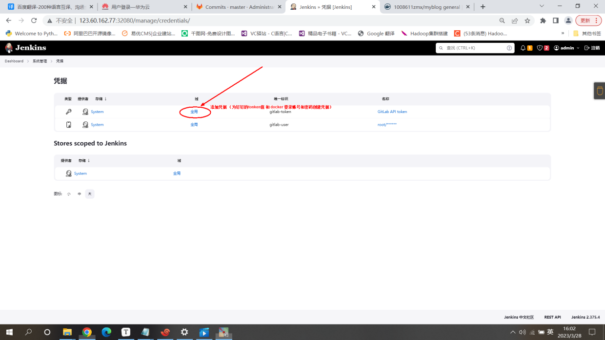 根据提示的gitee对接所需要的url 以及域名 和需要的凭证信息(在gitee设置里面配置,当然导入到jenkins中)可以实现对接