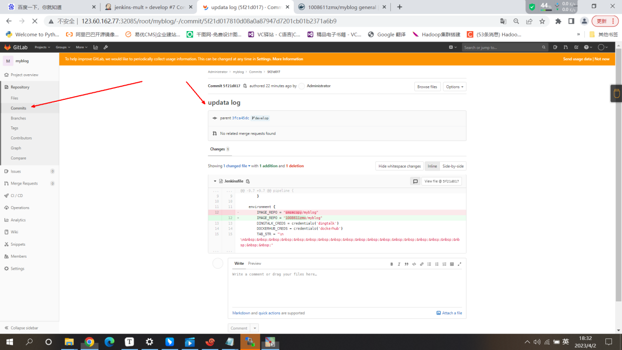 部署完sonar代码扫描之后和myblog的博客之后对源代码目录中的Jenkins流水线脚本进行修改