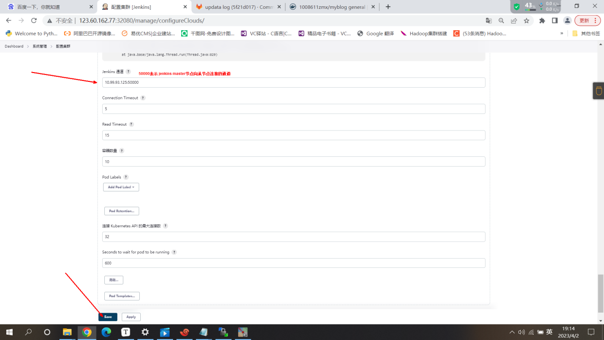 (记得写完成加端口号50000 10.99.93.125:50000)点击保存就好