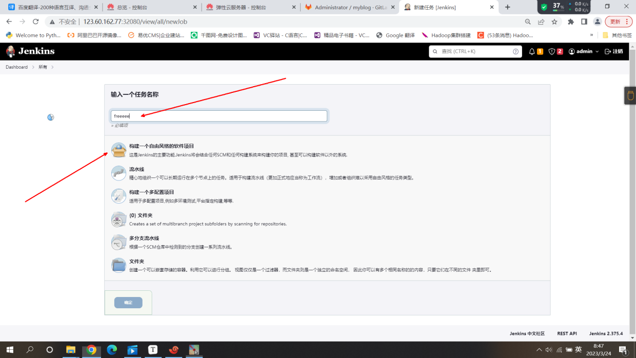 ps:构建过后的代码存放在jenkins动态存储类中/workspace/freeeee目录中
