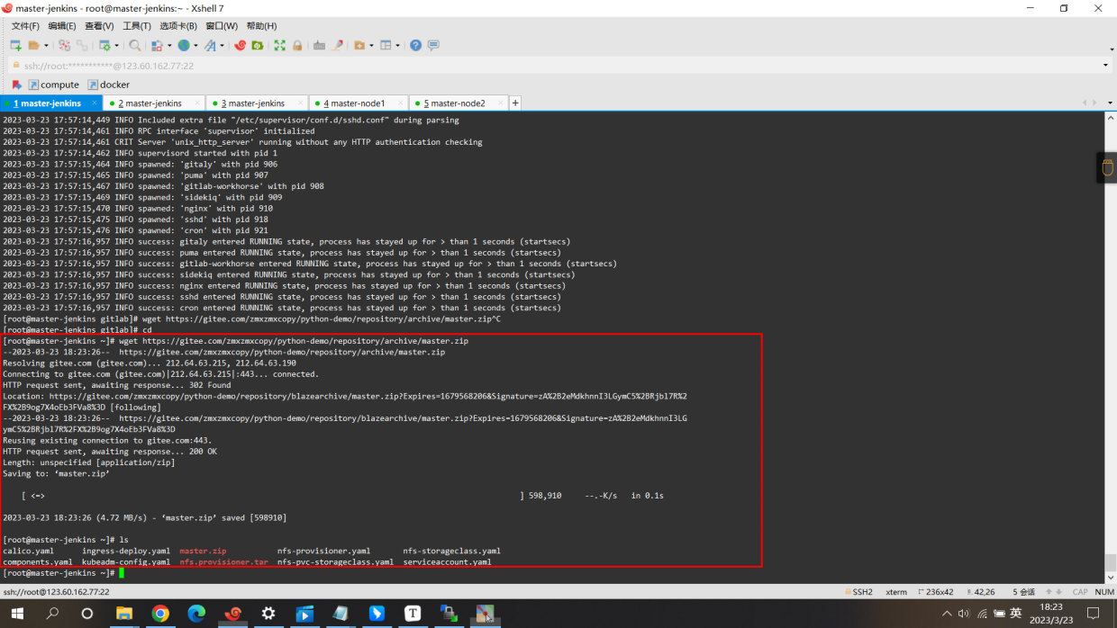 直接在master上下载 让后解压 : unzip +压缩包 (yum search unzip)