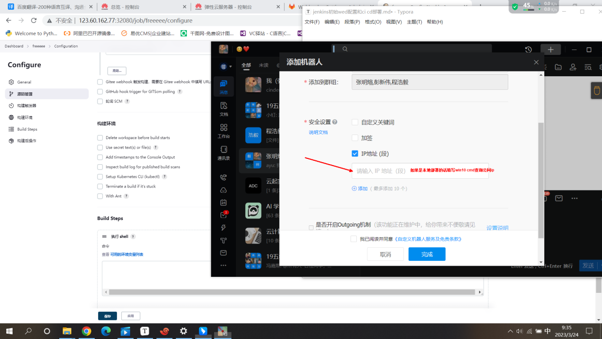 ps⛵️创建钉钉机器人的ip段要尤其注意 !!!!!!正常情况下在本地搭建的需要写的win公网ip