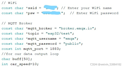 其作用是规定串口通信的波特率,连接WiFi,连接到公共的MQTT broker。