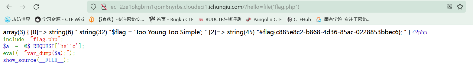 var_dump();show_source("flag.php");highlight_file("flag.php");