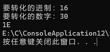 int main() {int m, i, j=0, x=0, num,y=0;printf("要转化的进制:");scanf_s("%d", &m);printf("要转化的数字:");scanf_s("%d", &num);tran(num,m);