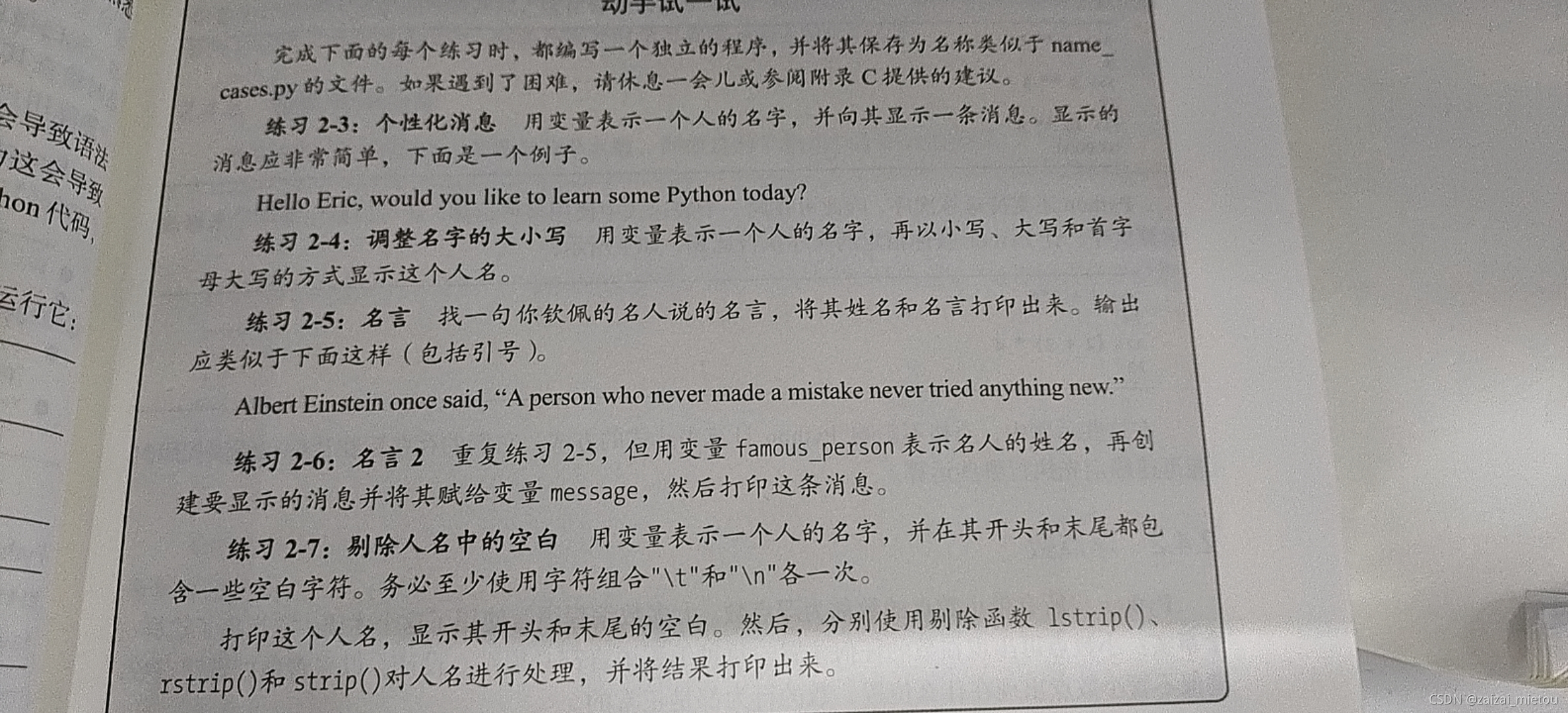 前面的练习没什么问题,但在最后名言输出时f“{},{}”,f往往容易忘记,再就是upper的()也容易丢失。