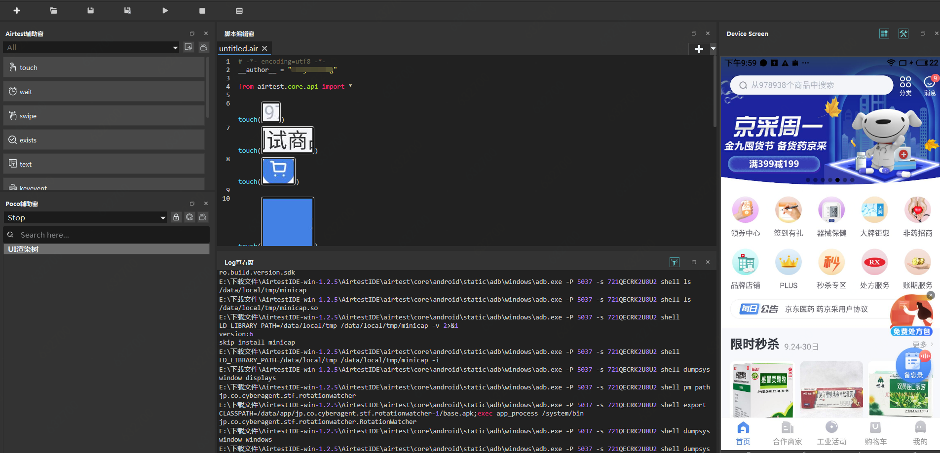 AirtestIDE:跨平台的UI自动化测试编辑器,内置了Airtest和Poco的相关插件功能,能够使用它快速简单地编写脚本;