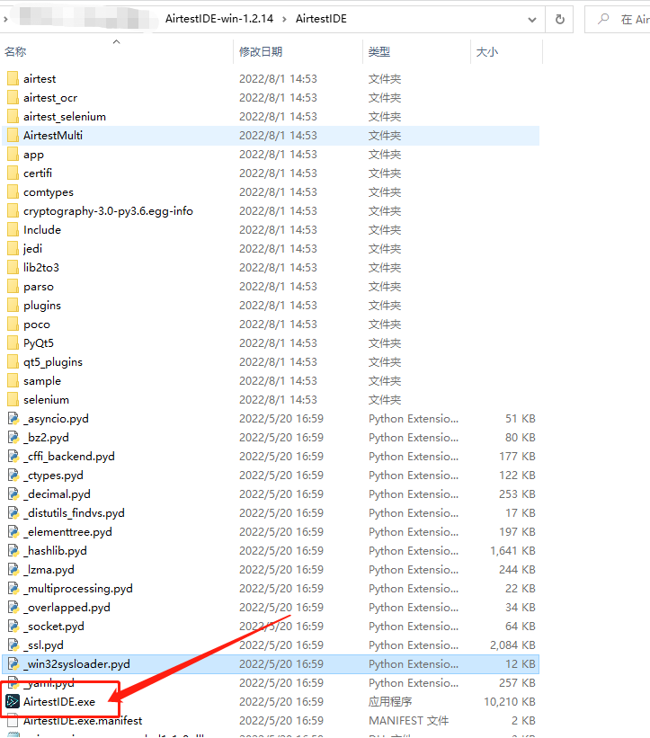 下载完成后,解压安装包,在解压文件中找到F:\AirtestIDE-win-1.2.14\AirtestIDE\AirtestIDE.exe
