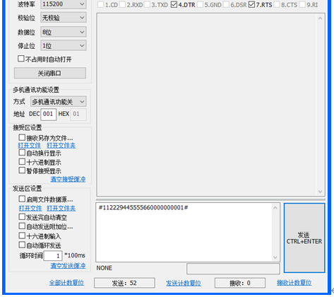上位机通过串口下达指令,前面四位为温度上下限,0代表每一个电机为关闭状态。