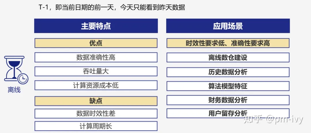 - 离线数据的缺点也很明显,就是慢。今天的数据,要隔天(明天)才能看得到。