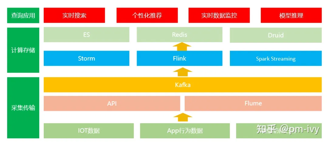- 数据周期短,由于是流式处理的方式,相应的组件在实时处理方面能力强,但是没办法存储太长时间的数据,一般数据计算的周期会限定在一周内居多。