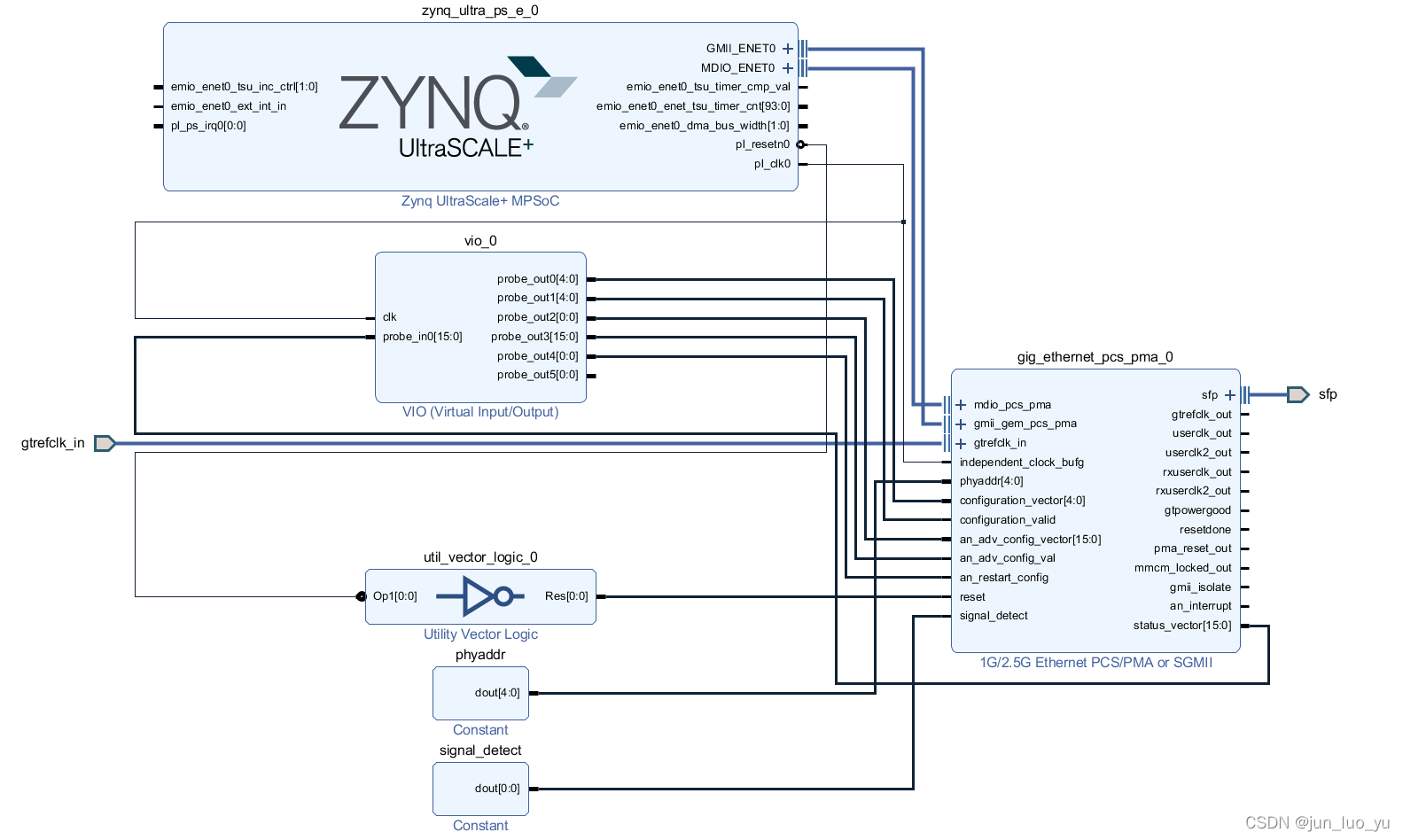 参考官方的zcu102例子搭建,使用SFP构建1000Base-x的转接口。