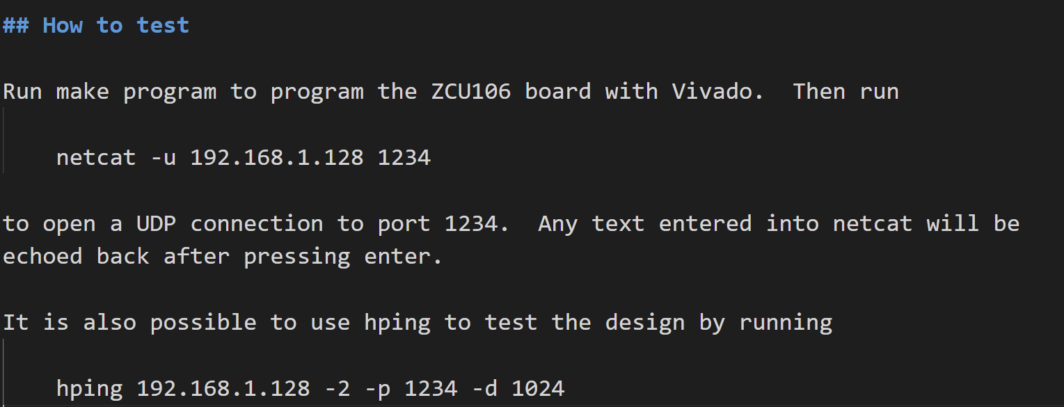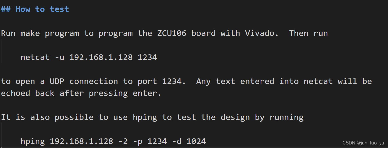直接在linux下make好zcu106对应的设计,然后ping对应的IP,这里使用的也是SFP,实现了一个回传发送。