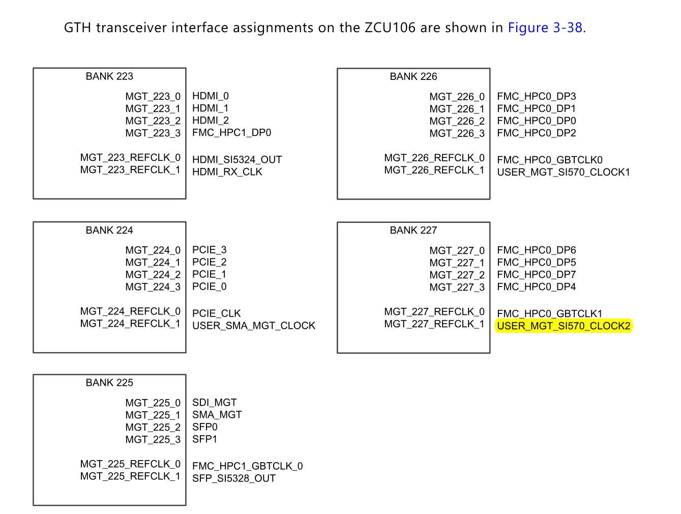 需要找到GTH(GTH是一种高速的收发器,支持500Mb/s到16.375Gb/s的传输速度)的位置。