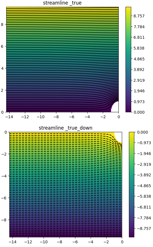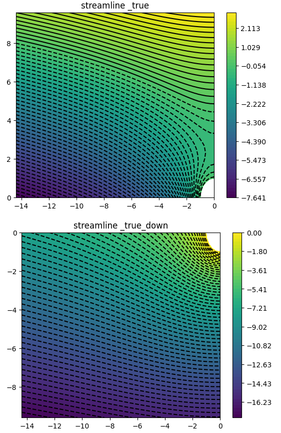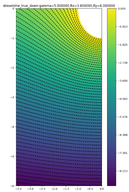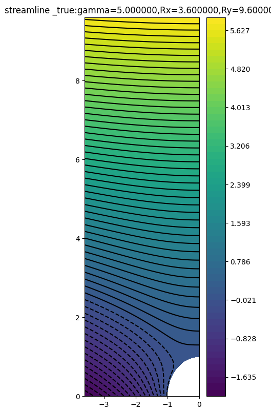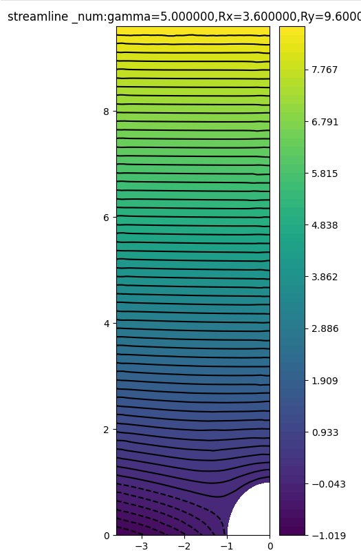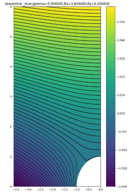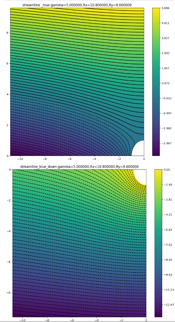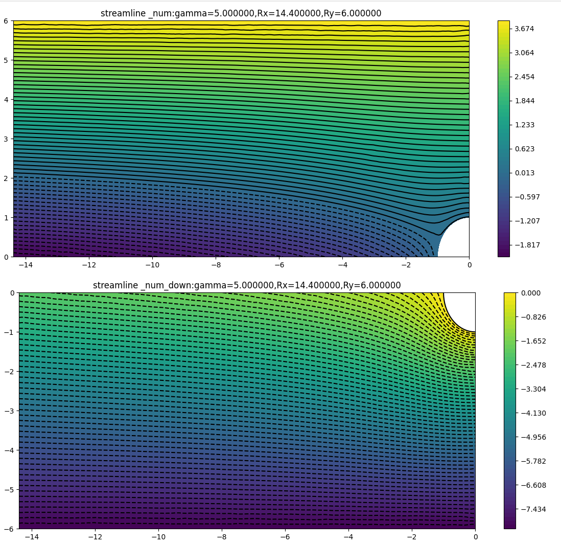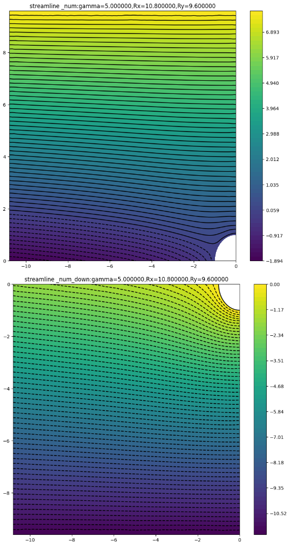我们通过施加不同的边界条件来体现出有环量与无环量的不同。有环量的情况相当于绕圆柱额外施加一个环量为Gamma的平面点涡流动,易得其流函数为 。