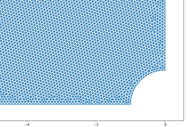 但由于在加大网格密度时计算效率不高,简便起见,利用Gmsh来生成误差分析所需的均匀三角网格。所有用到的网格已放在文件中。
