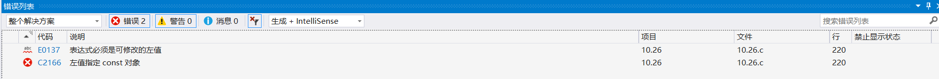 int main( ){const a = 10;printf("%d\n", a);a = 20;printf("%d\n", a);return 0;
