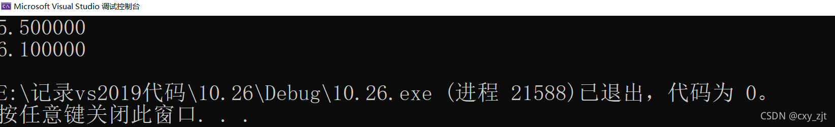 {float a = 5.5;double b = 6.1;printf("%f\n", a);printf("%f\n", b);return 0;