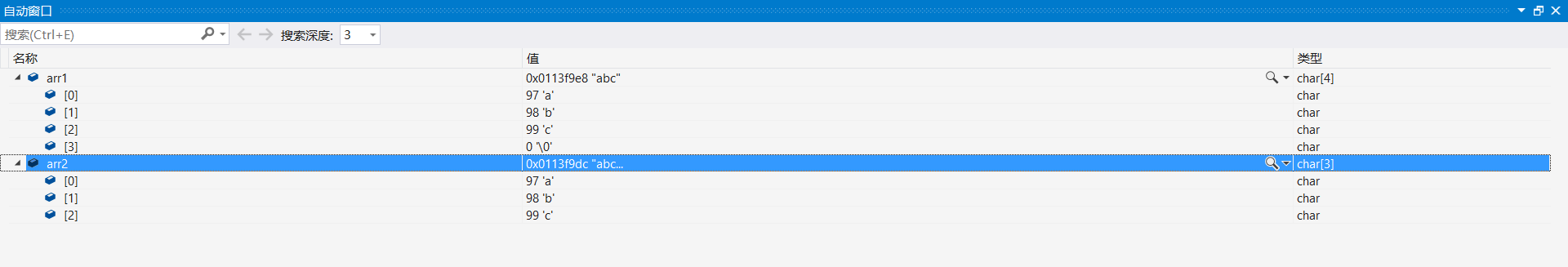 int main() {char arr1[] = "abc";//代码1char arr2[] = { 'a','b','c' };//代码2printf("%s\n%s\n", arr1, arr2);return 0;