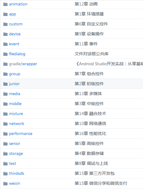 工程与章节的对应关系如下:(github上的截屏)