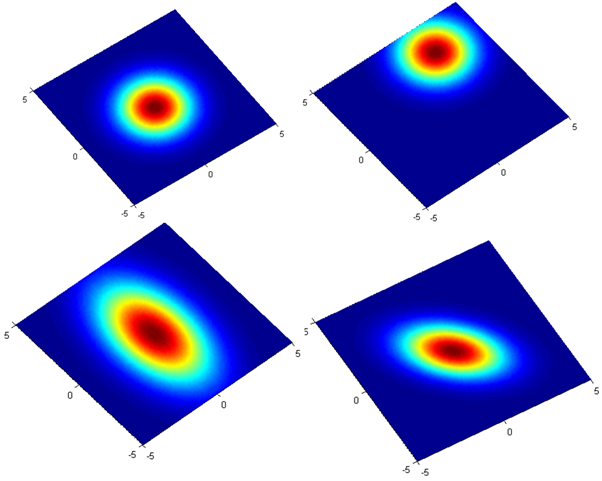 这个概率由两个东西决定: 均值μ(期望向量), 方差Σ(covariance协方差矩阵). 将这两者代入f得到不同分布, μ决定几率分布最高点, Σ决定分布的密集程度.