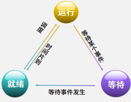 三种状态:就绪、运行、等待。