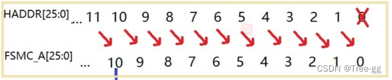 当Bank1接的是8位宽度存储器的时候: HADDR[25:0]→FSMC A[25:0]