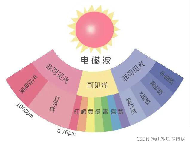 在自然界中,凡是温度大于绝对零度(-273℃)的物体都能辐射红外线,它和可见光、紫外线、X射线、伽玛线、宇宙线和无线电波一起,构成了一个完整连续的电磁波谱。其波长在0.76μm至1000μm之间,是比红光波长长的非可见光。