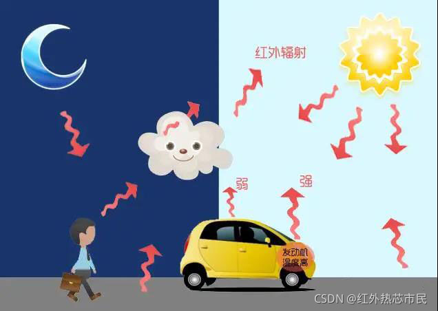 2)红外线辐射强度能反应温度高低,当同一物体的温度升高时,红外辐射会增强;