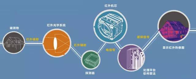 红外热成像系统是一种被动式的非接触的检测与识别的红外技术,它通过能够透过红外辐射的红外光学系统,将景物的红外辐射聚焦到探测器阵列上,探测器再将强弱不等的辐射信号转换成相应的电信号,然后经过放大和视频处理,形成可供肉眼观察的视频图像。