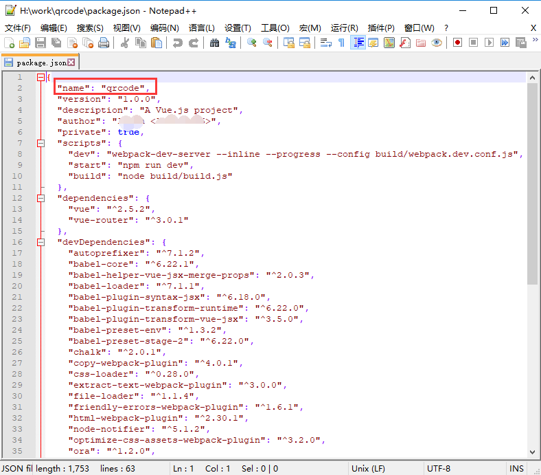 2、.修改根目录下的package.json文件,把name修改成你的项目名称