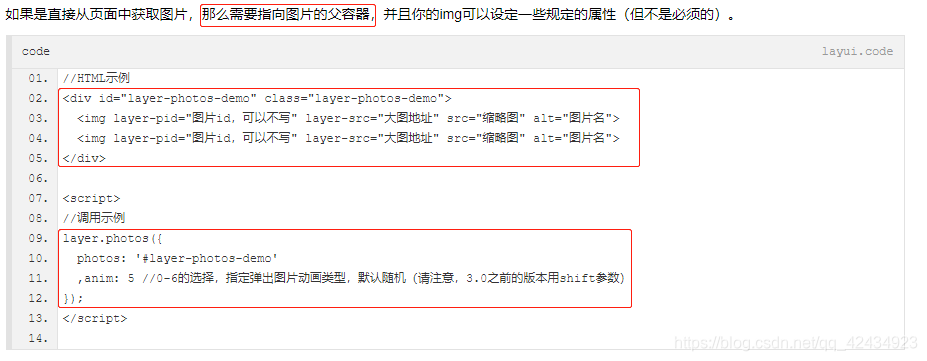 官方开发文档里photos支持传入json和直接读取页面图片两种方式。