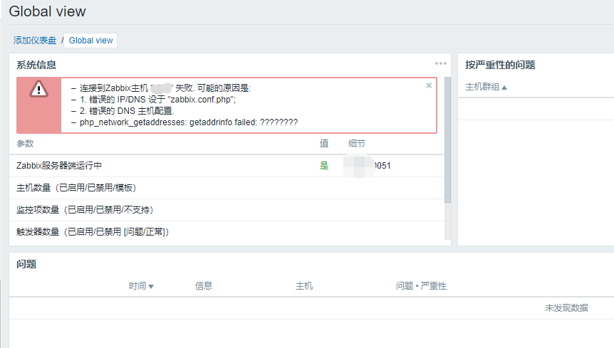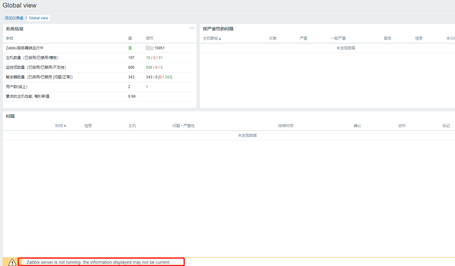 在网站页面底部,间断性显示报错信息:zabbix server is not running: the information displayed may not be current