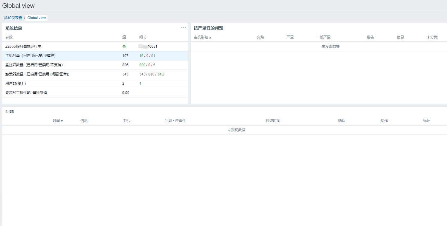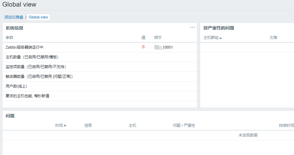 查找日志,没有显示任何相关报错信息,后面不断刷新网页发现另外一个问题,就是“仪表盘”页面会出现另外的报错,如下