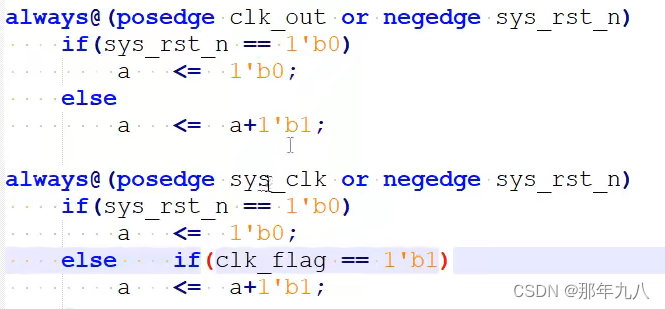 而用clk_out则在敏感信号处就不是用的系统晶振时钟,而是自己创建的时钟作为敏感信号。