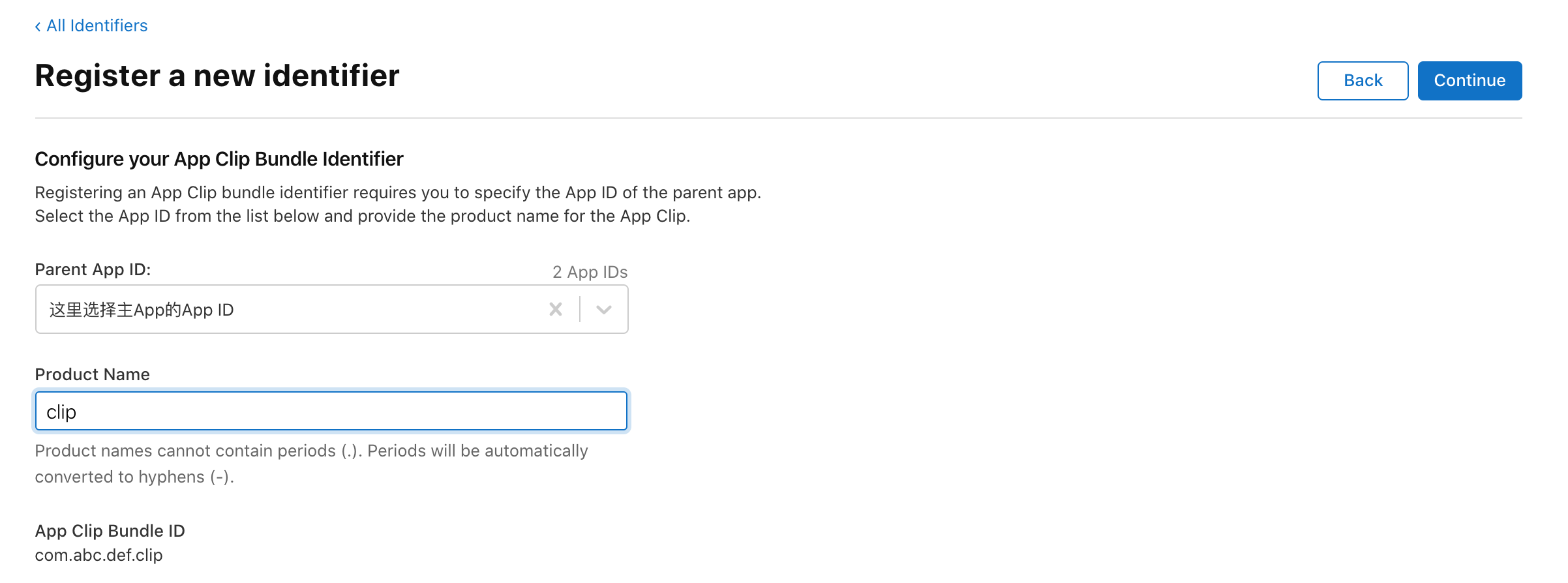 创建App Clips ID