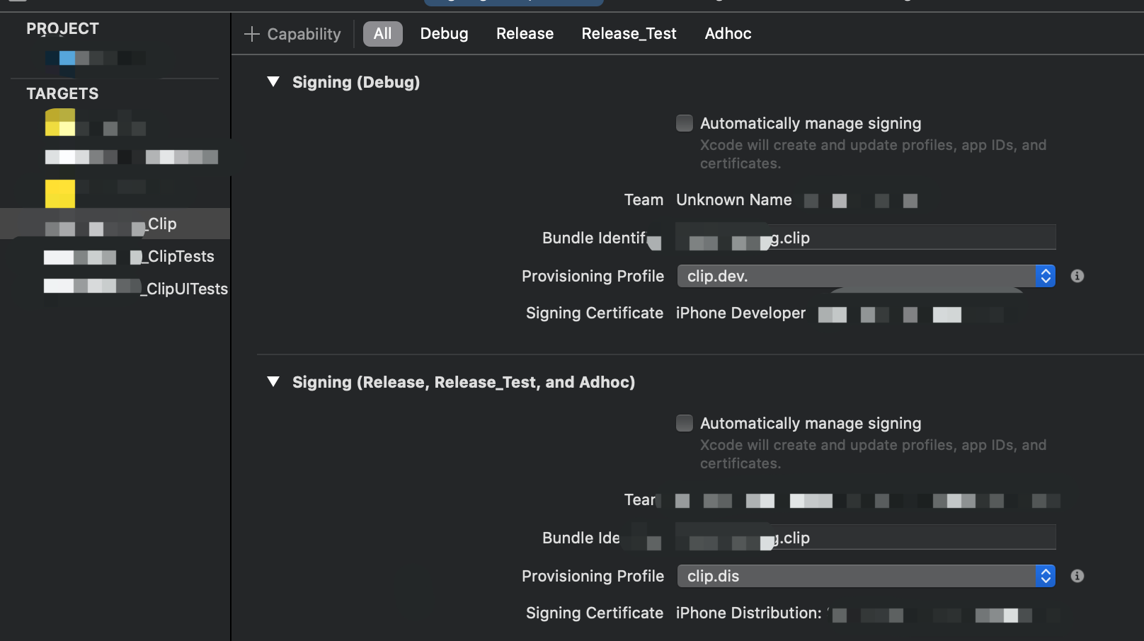 主工程的Target和Clip的Target都需要配置!!!