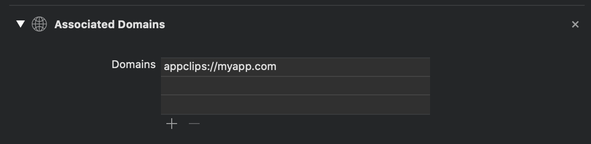 添加Associated Domains,目的是打开对应域名网页后,页面上方能够出现Clip的入口。