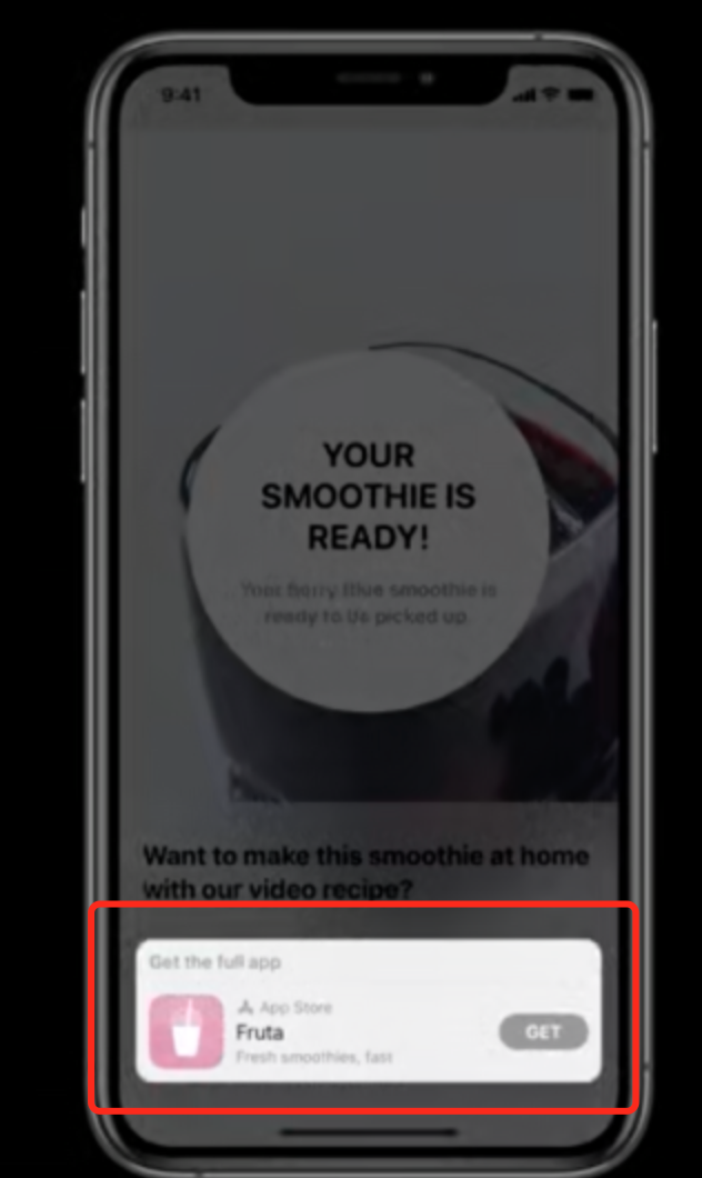 当用户用iOS的Safari浏览器浏览相应的网址后,页面顶部会出现一个横幅,提示用户有App Clips可以用。
