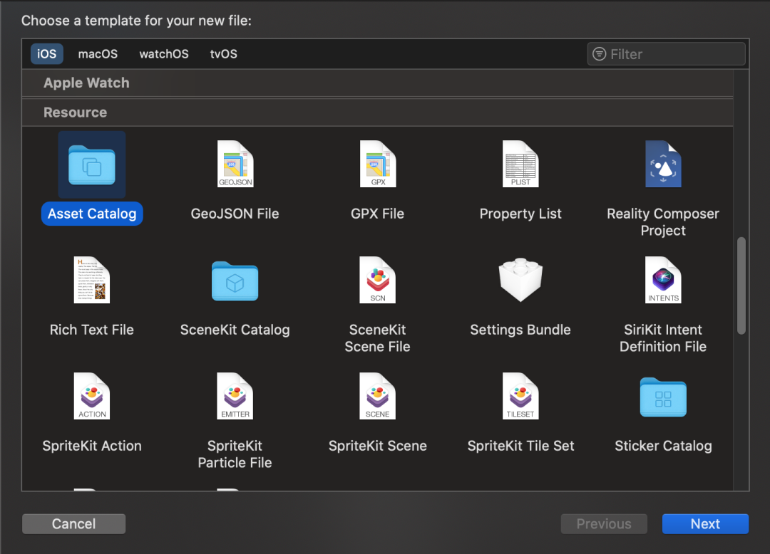 由于主应用程序(iOS or macOS)和 App Clip 某些资源文件是共用的,因此我们可以新建一个共享的 Asset Catalog ,此处注意勾选需要共享的几个 target。