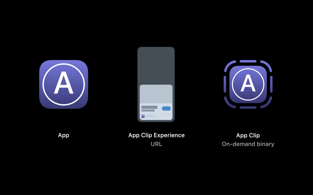 App Clip,能够让用户在未安装你发布的完整应用程序情况下,就能体验其中的部分功能,session 中开篇就提到 “App Clips are an additive feature.” ,即附加功能,这意味着你必须先拥有一个 App 主应用程序,才能继续开发该应用的 App Clip,更多关于 App 主应用程序和 App Clip 的关联关系此处先按下不表,下文展开,此外 App Clips 不难让人联想到 Android Instant apps 、微信小程序以及 PWA,三者的横向比较推荐一波卓同学的苹果 App Clip 技术详解一文。