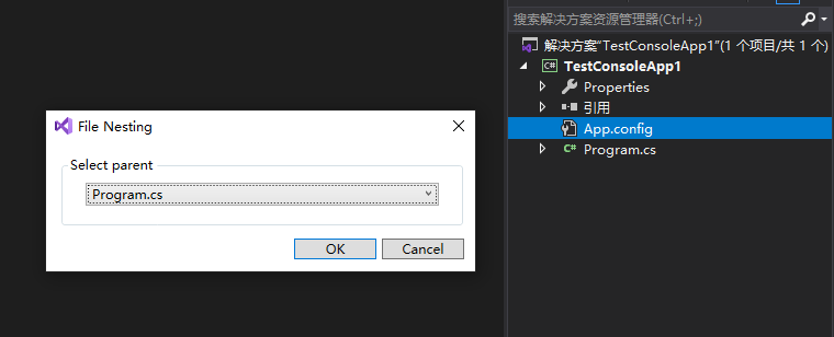 VisualStudio进行文件嵌套的方法