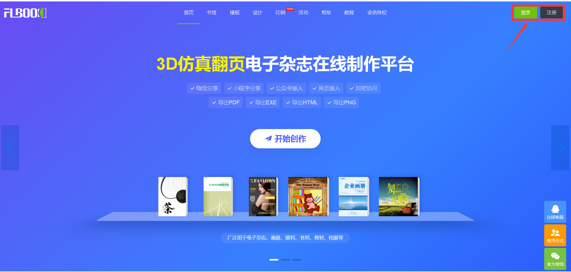 1.浏览器搜索FLBOOK,点击登录与注册,可以使用微信、QQ一键快速登录;