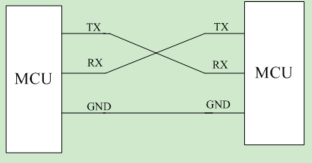 两个设备间将TX与RX相连,RX与TX相连即可正常工作