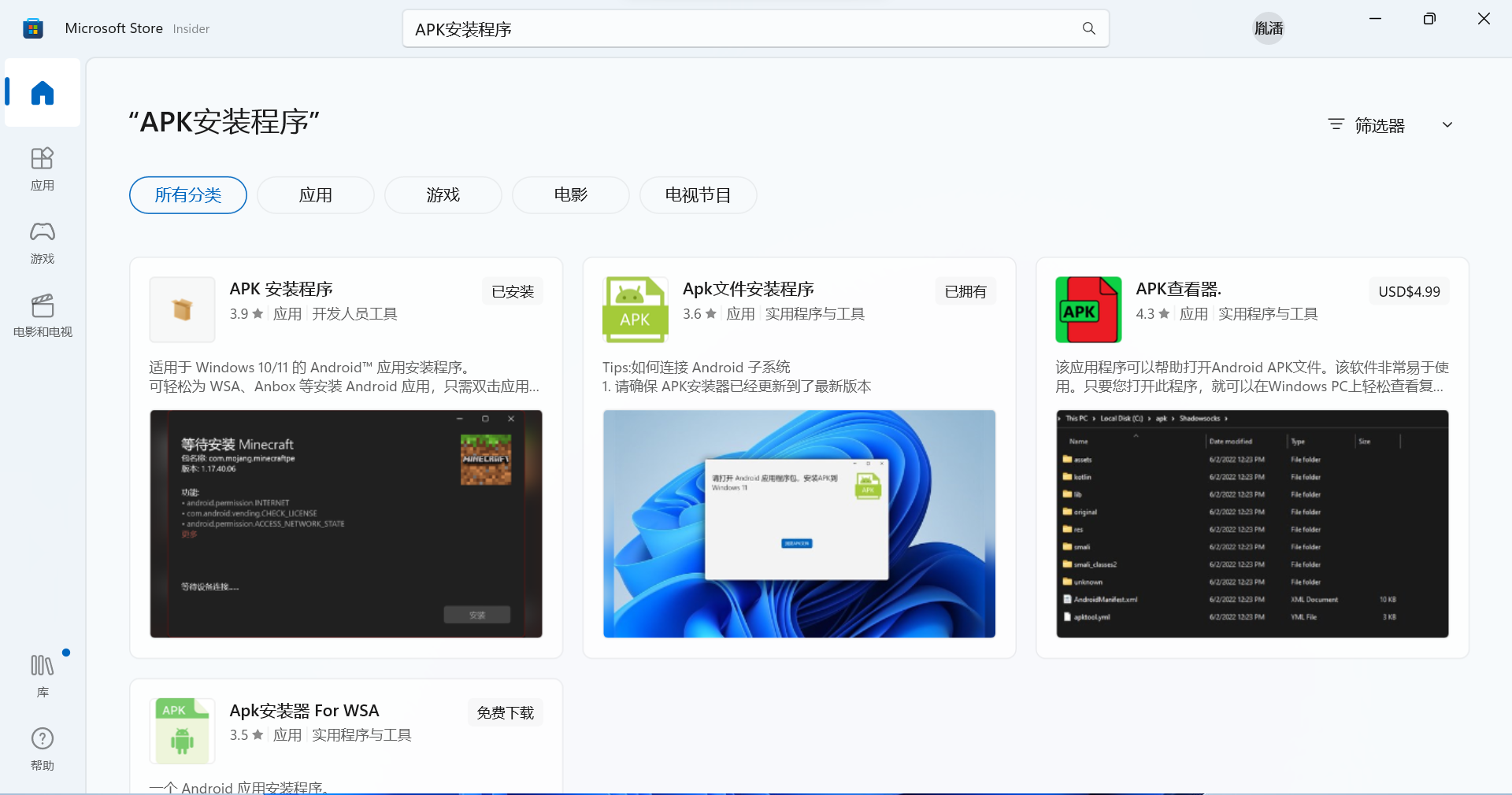 第六步,打开Microsoft Store并搜索APK安装程序: