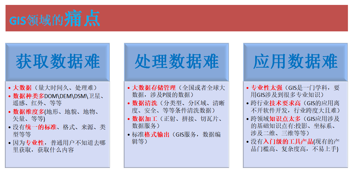 - 数据量大:GIS数据是空间数据,涉及到地理位置全国、全球范围数据,一不小心就是TB级的大数据。
