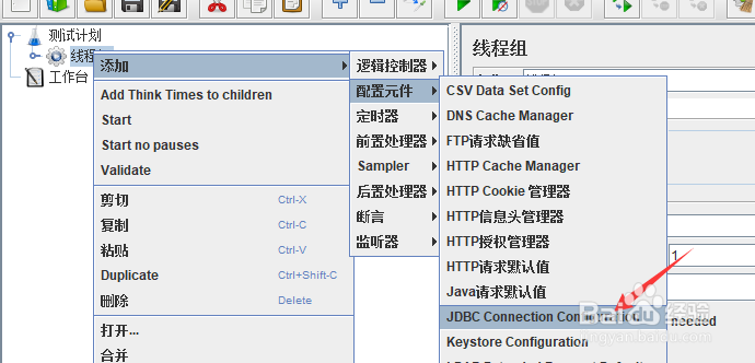 右键线程组【添加】--【配置元件】--【JDBC Connection Configuration】
