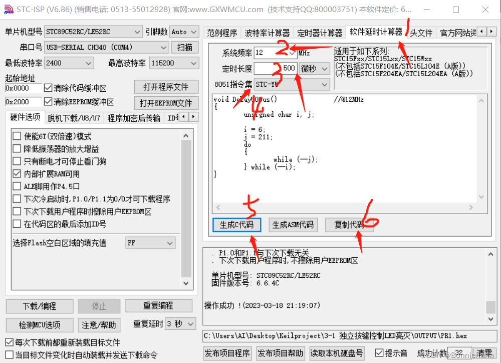 void Delay500ms() //这个Dalay函数是从软件延时定时器中复制的c代码