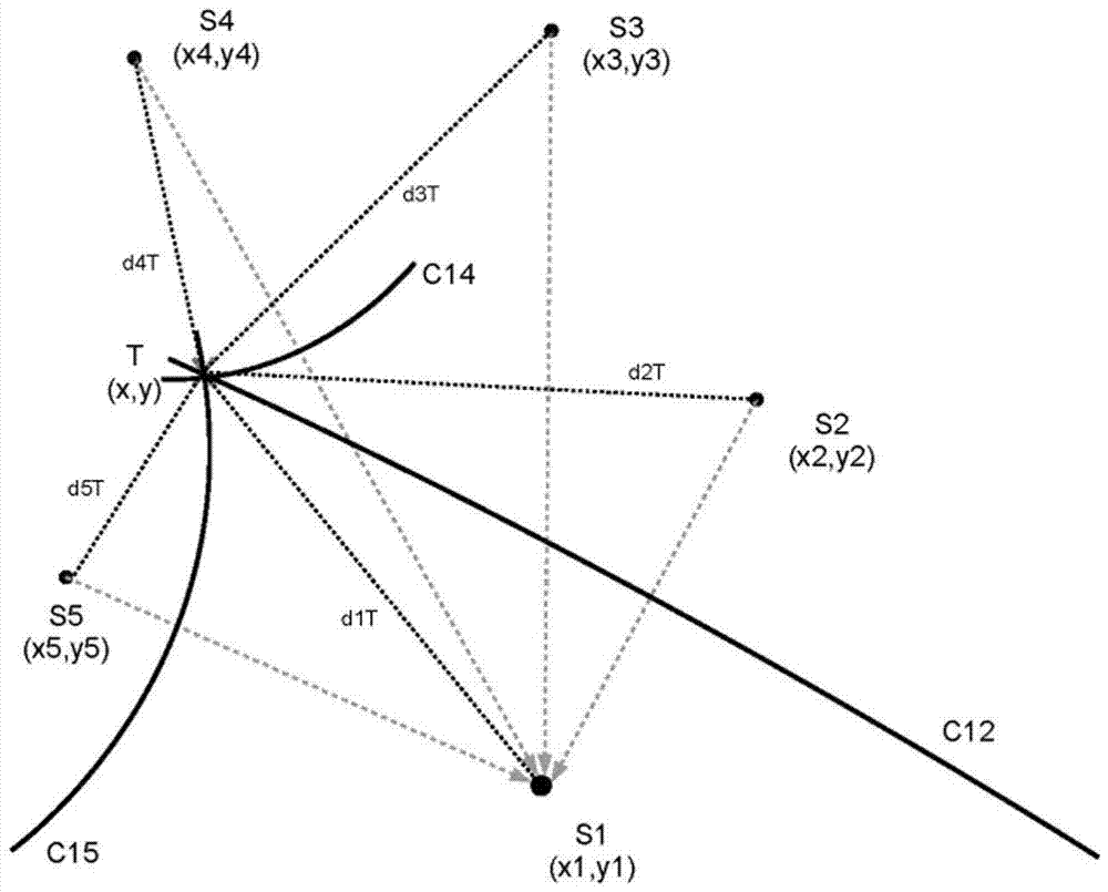 2) 经过准确估量出标签发送信号抵达定位基站的视点,测量出标签在2D平面里X,Y的坐标定位,完成对标签的准确定位;